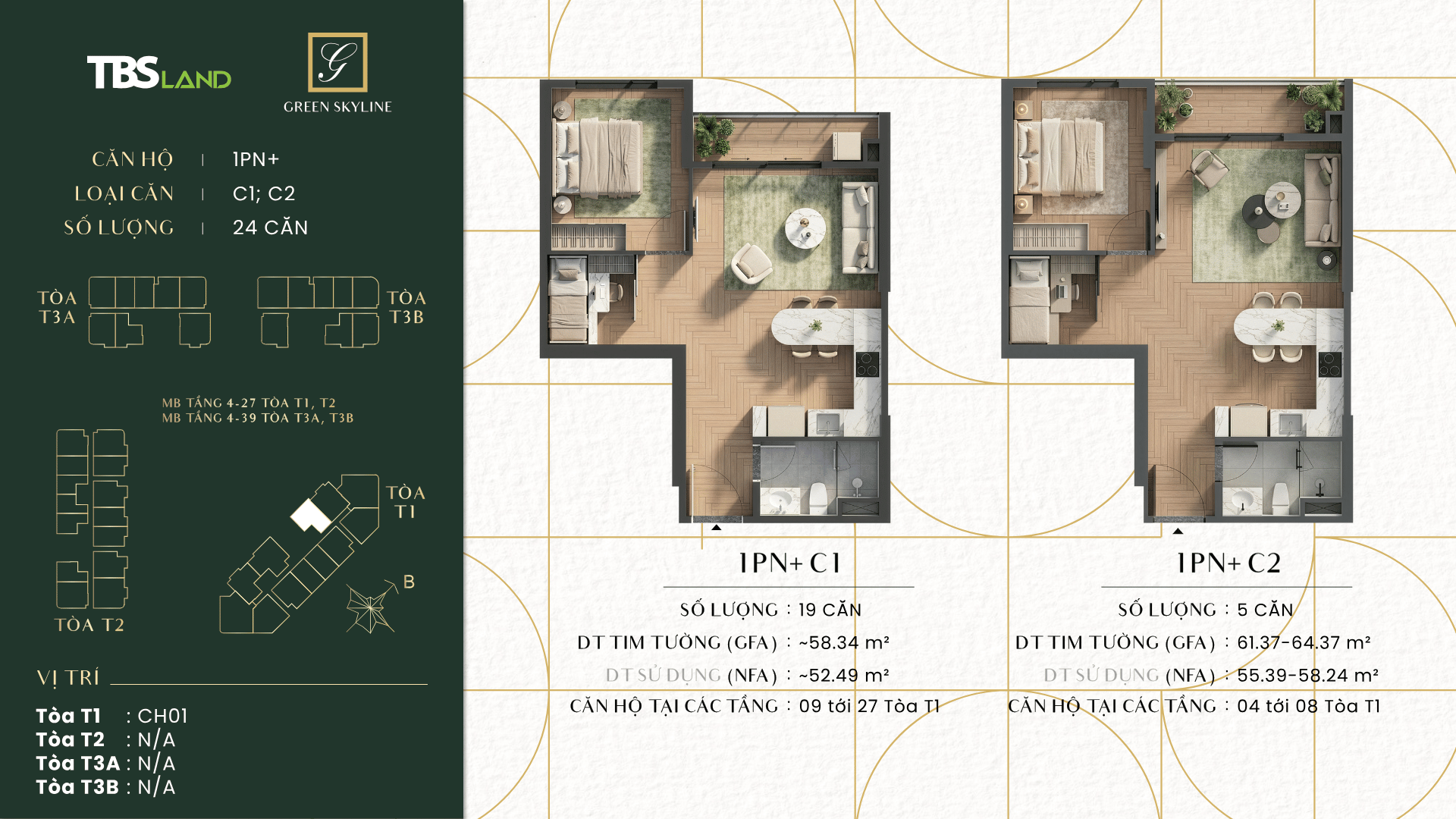 LAYOUT CĂN 1PN+1 1WC ( 58-64 m2 )