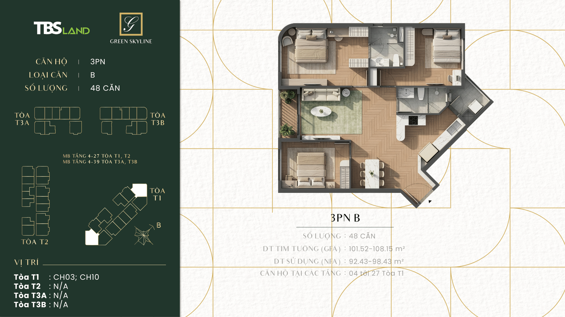LAYOUT CĂN 3PN 2WC ( 101-108 m2 )