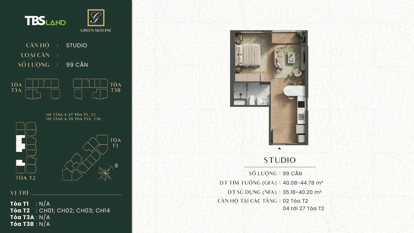 MẪU CĂN STUDIO ( 40-44 m2 )