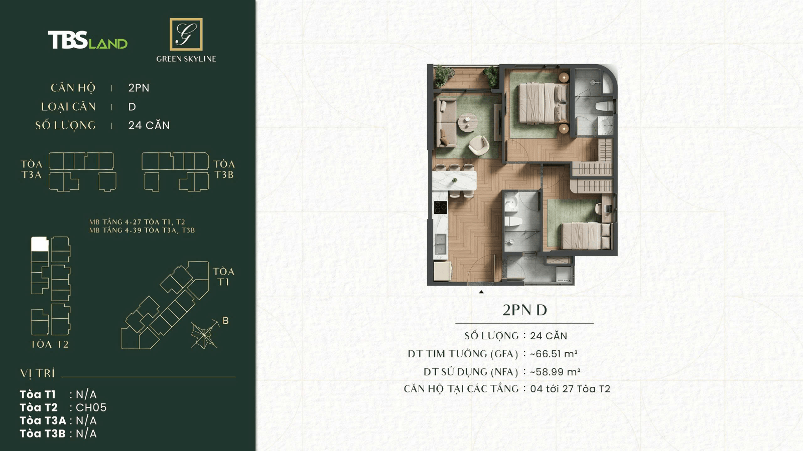 MẪU CĂN 2PN 2WC GÓC ( 66,5m2 )