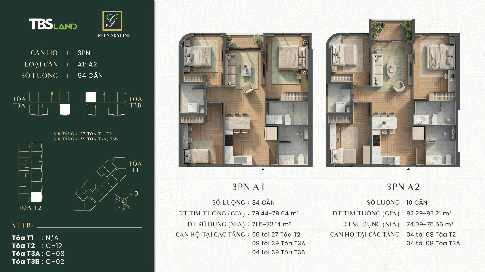 MẪU CĂN 3PN 2WC GÓC ( 80-83 m2 )